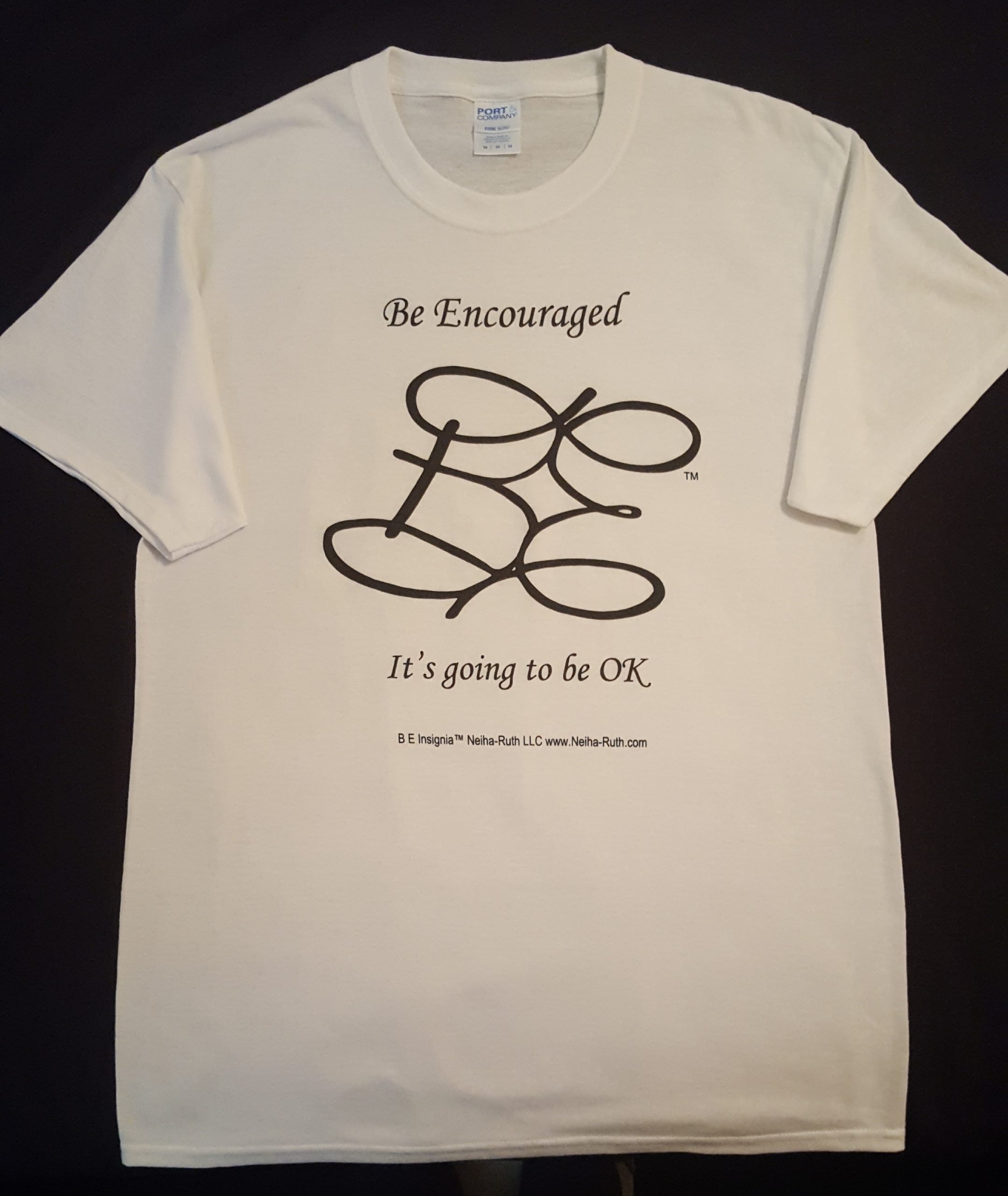 The B E Insignia T-Shirt is sure to inspire you and everyone else that sees it “because everyone could use a little encouragement.” Our soft comfortable T-Shirt come in white and are made with 50% Cotton/50% Polyester which helps minimize shrinkage when washed. They’re unisex designed can be wore by men or women and are available in sizes small, medium, large, XL large and 2X.